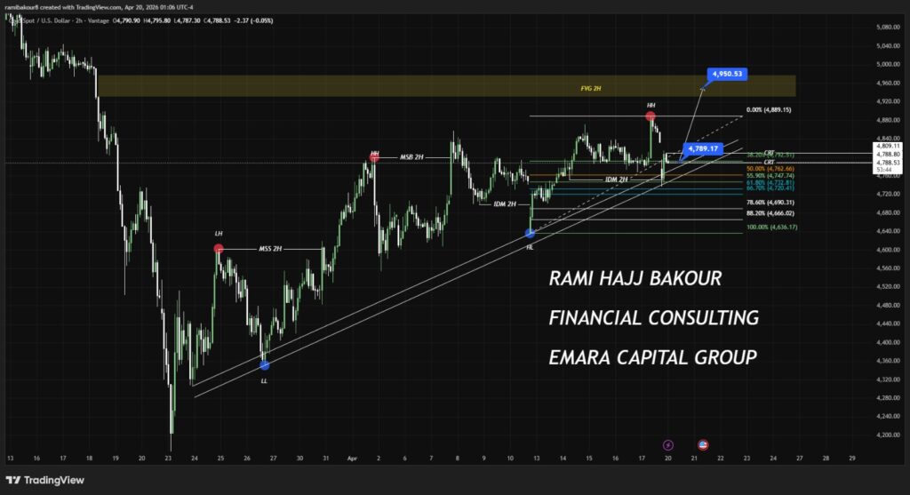➡️ نتوقع استمرار الصعود باتجاه: 4950 (منطقة FVG)